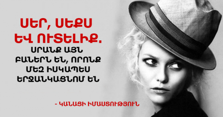- Կինը, ով չի սիրում իր տղամարդու թերությունները, ընդհանրապես չի սիրում իր տղամարդուն։