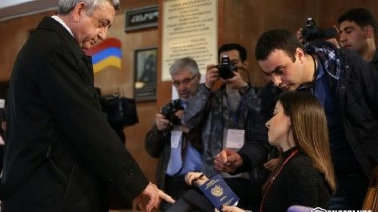 Քվեարկությունից հետո լրագրողների հարցին՝ թե հանուն ինչի՞ քվեարկեց երկրի նախագահը, Սերժ Սարգսյանը պատասխանեց. «Քվեարկեցի հանուն մեր երկրի անվտանգության և որ մեր երկրի սահմաններն անձեռնմխելի լինեն»,-նշեց նախագահը՝ շեշտելով, որ այսօր քվեներ հավաքելու օր է՝ ըստ էության չցանկանալով պատասխանել լրագրողների մյուս հարցերին: