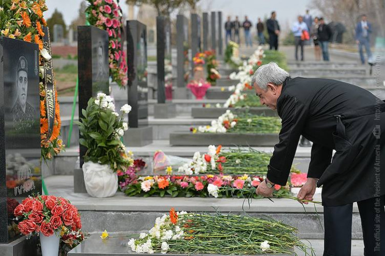 Օրվա իրադարձություններՀանրապետության Նախագահ, Զինված ուժերի գերագույն գլխավոր հրամանատար Սերժ Սարգսյանն այսօր ՀՀ պաշտպանության նախարար Վիգեն Սարգսյանի և ԶՈւ բարձրաստիճան սպայակազմի ուղեկցությամբ այցելել է «Եռաբլուր» զինվորական պանթեոն՝ հարգանքի և երախտագիտության տուրք մատուցել հակառակորդի կողմից սանձազերծված ապրիլյան ռազմական ագրեսիայի ժամանակ Հայրենիքի սահմանների պաշտպանության ընթացքում անձնվիրաբար զոհված մերօրյա հերոսների և Արցախյան ազատամարտում Հայրենիքի անկախության համար իրենց կյանքը զոհաբերած բոլոր հայորդիների հիշատակին:
