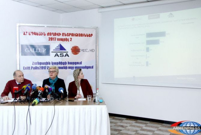 ՔաղաքականՀայկական սոցիոլոգիական ասոցիացիայի և BS/The Gallup Organization մասնագիտացված կազմակերպությունների կողմից իրականացրած էքզիթ փոլի արդյունքներով ապրիլի 2-ի Ազգային ժողովի ընտրություններում ձայների մեծամասնությունը` 46 տոկոսը, ստացել է Հայաստանի Հանրապետական կուսակցությունը: Ինչպես «Արմենպրես»-ի հետ զրույցnւմ նշեց Հայկական սոցիոլոգիական ընկերության նախագահ Գևորգ Պողոսյանը, էքզիթ փոլի նախնական արդյունքներով անցողիկ շեմը հաղթահարում է չորս ուժ.