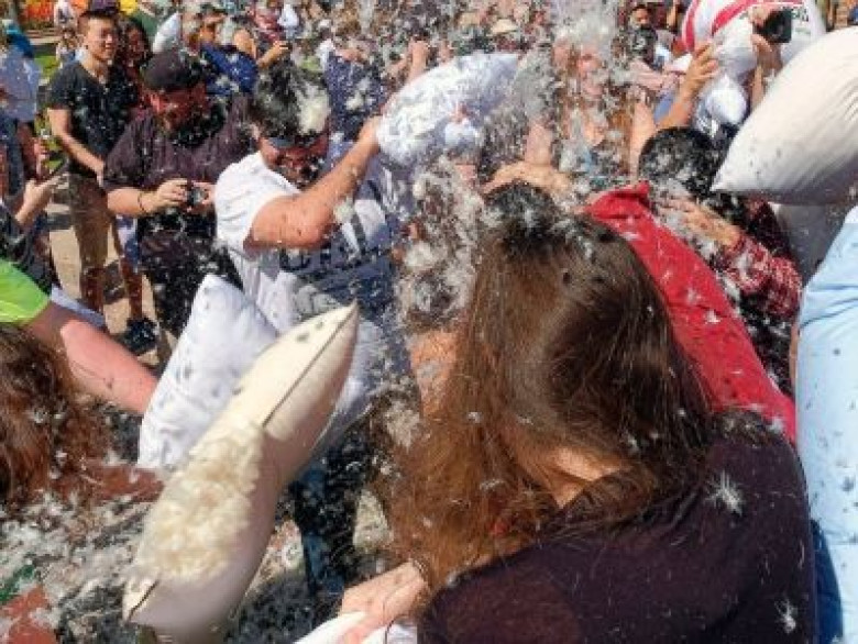 ՄիջազգայինԼոս Անջելեսի հարյուրավոր բնակիչներ բարձերով մարտ են կազմակերպել ՝ Բարձերով մարտի միջազգային օրվա կապակցությամբ, հայտնում է ABCnews–ը։ Ամբողջ քաղաքում փետուրներ էին սավառնում։ Երեխաները , դեռահասները, մեծահասակներն ու տարեց մարդիկ մի քանի ժամ շարունակ միմյանց վրա բարձեր էին նետում։ Շատերը մարտերին մասնակցում էին քնազգեստներով, սակայն շրջահայացորեն նաեւ ակնոց ու դիմակներ էին հագել։ Հրապարակը, որտեղ տեղի էր ունենում մենամարտը, ամբողջովին կորել էր փետուրների մեջ։