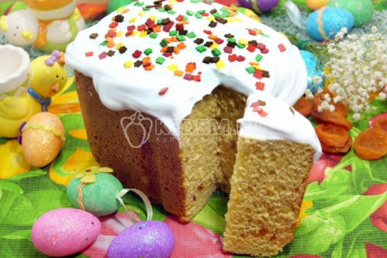 Украсить остывший кулич и украсить кондитерской посыпкой.