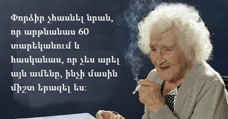 11. Մի անգամ ենք ապրում կյանքում: Փորձիր չհասնել նրան, որ արթնանաս 60 տարեկանում և հասկանաս, որ չես արել այն ամենը, ինչի մասին միշտ երազել ես: