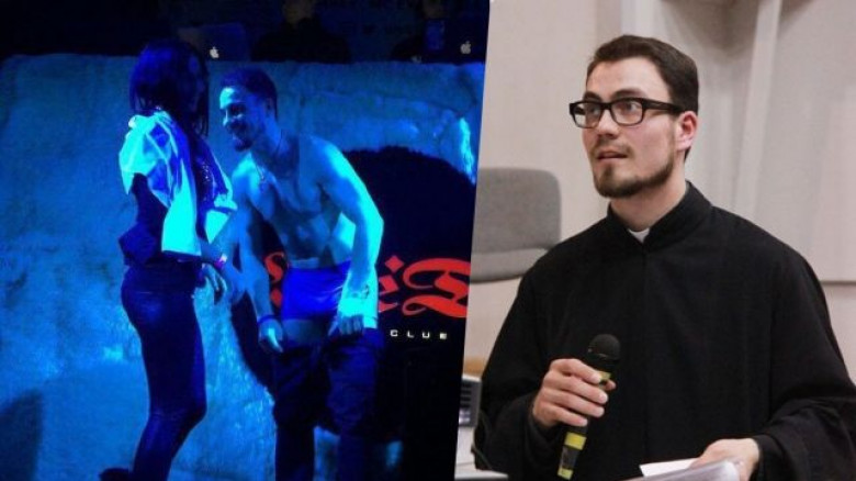 Նկարներում մինչև վարտիքը հանված հոգևորականն է՝ ինչ որ աղջկա գրկած: Իր խոսքերով՝ չարամիտները իր խմիչքի մեջ ինչ որ թմրեցնող բան են գցել և տարել ակումբ: