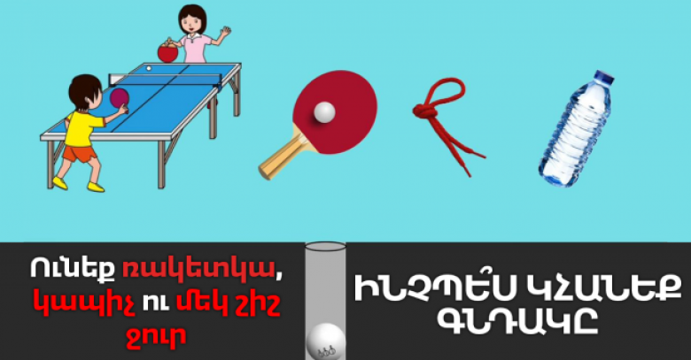 Ենթադրենք՝ սեղանի թենիս խաղալիս գնդակն ընկնում է անցքը։ Ինչպե՞ս կհանեք այն, եթե ունեք միայն ռակետկա, կապիչ ու շշով ջուր։