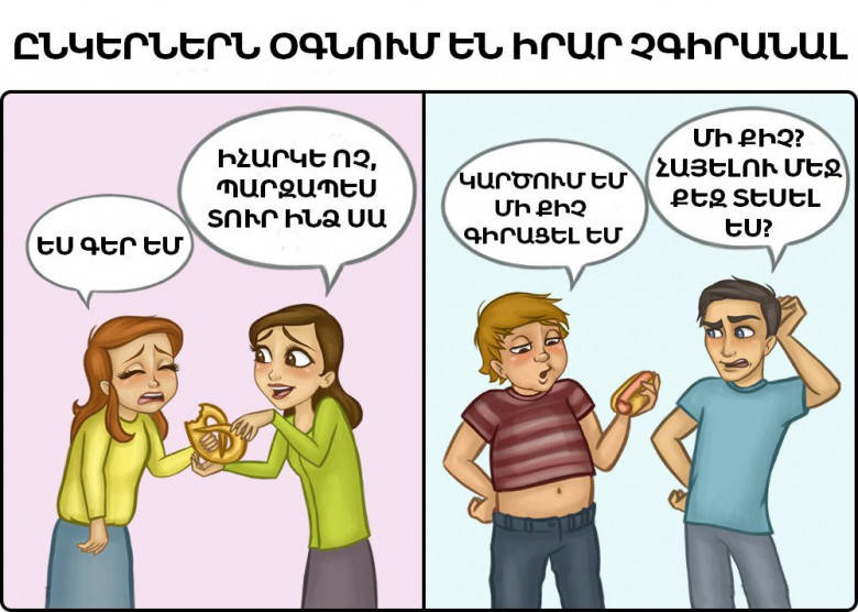 9 դիպուկ նկարազարդումներ, որոնք արտացոլում են կանացի և տղամարդկային ընկերությունների տարբերությունները
