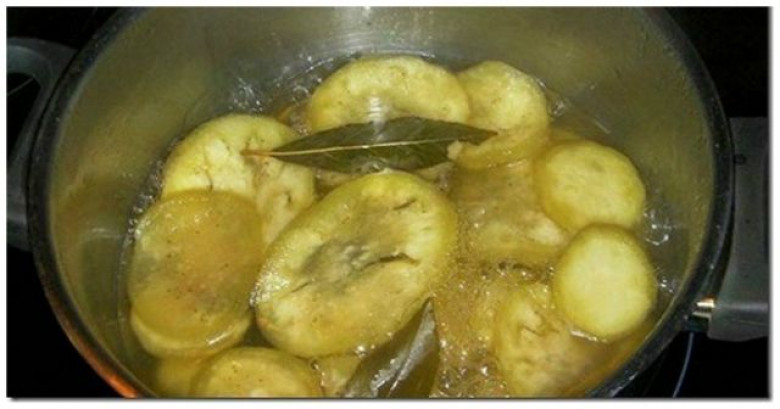 Սմբուկը լվացեք, օղակաձև կտրտեք, լցրեք եռացող ջրով կաթսայի մեջ: Թողեք մինչև տաք ջուրը սառի: