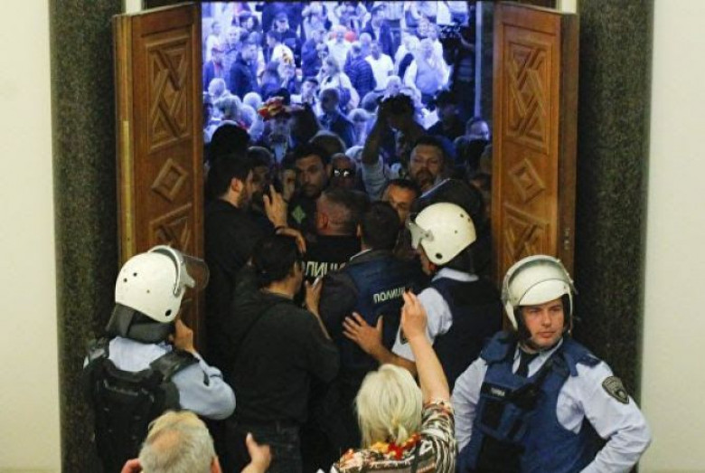 Ապրիլի 27-ին Մակեդոնիայի խորհրդարանի խոսնակ Է ընտրվել Էթնիկ ալբան Թալաթ Ջաֆերին: Դա դժգոհություն Է առաջացրել եւ հանգեցրել բողոքավորների հարձակմանը խորհրդարանի վրա: Բողոքավորները երեկոյան բռնությամբ ներխուժել են Հանրապետության ժողովի շենք եւ ծեծել ընդդիմության առաջնորդ Զորան Զաեւ ին եւ ընդդիմադիր՝ Մակեդոնիայի սոցիալ-դեմոկրատական միության մի քանի պատգամավորների, ինչպես նաեւ ալբան խորհրդարանական Զիյադին Սելին: