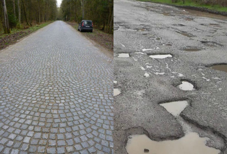 Ձախ կողմում 19-րդ դարի վերջին կառուցված Կալինինգրադի մի ճանապարհ է, որը գերմանացի գերիները վերանորոգել են երկրորդ համաշխարհային պատերազմի տարիներին: Մյուս նկարում Դիլիջան-Իջևան ճանապարհն է, որը վերանորոգվել է... մեկ տարի առաջ: Այսինքն պետք է ոչ թե երկար-բարակ հաշվարկ անել, թե ինչքան են մերոնք <համփ> անում ճանապարհների վերանորոգման ժամանակ, այլ մտածել, թե ոնց անել, որ Գերմանիայի հետ պատերազմի բռնվենք ու ահագին գերի վերցնենք..))