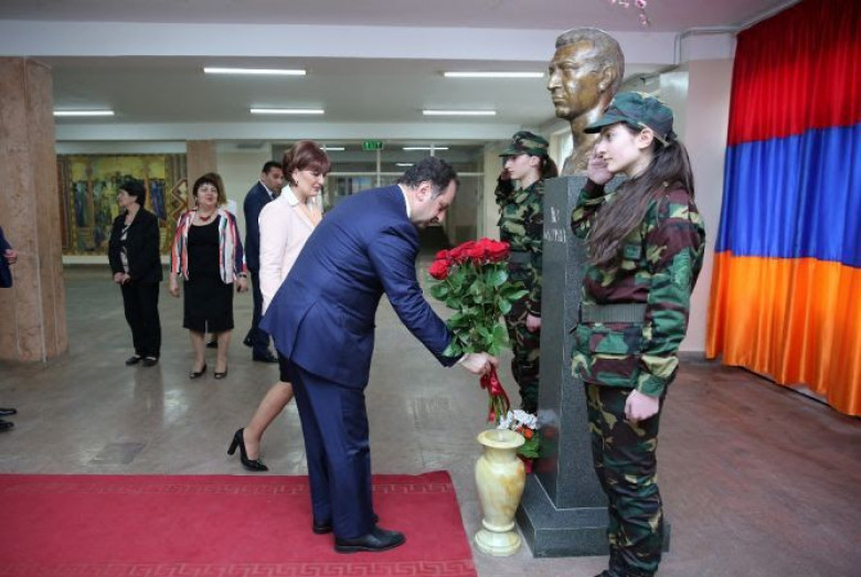 պաշտպանական գերատեսչության ղեկավարը ծաղիկներ է խոնարհել Աշոտ Նավասարդյանի կիսանդրու մոտ, եղել է դպրոցում գործող, քաղաքական և պետական գործչի անվան թանգարանում, ծանոթացել կրթօջախի նախնական զինվորական պատրաստության դասարանի պայմաններին։
