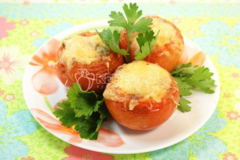 Բոլորը միախառնել, լցոնել լոլիկը, քերել պանիրը, դնել ջեռոց 10 րոպե։
