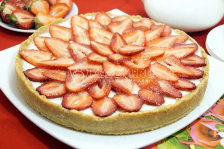 Լցնել թխվածքաբլիթի վրա, շարել ելակը։