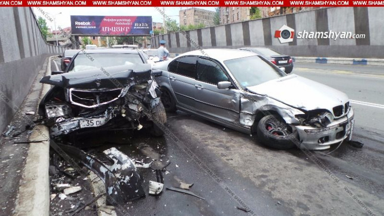 Այսօր՝ մայիսի 19-ին, խոշոր ավտովթար է տեղի ունեցել Երևանում։ Ժամը 11։20-ի սահմաններում Հերացի փողոցից դեպի Խանջյան փողոց տանող ճանապարհահատվածում՝ թունելի սկզբնամասում, բախվել են Mercedes մակնիշի 35 DL 990 համարանիշի և BMW մակնիշի 34 ՕZ 651 համարանիշի ավտոմեքենաները։
