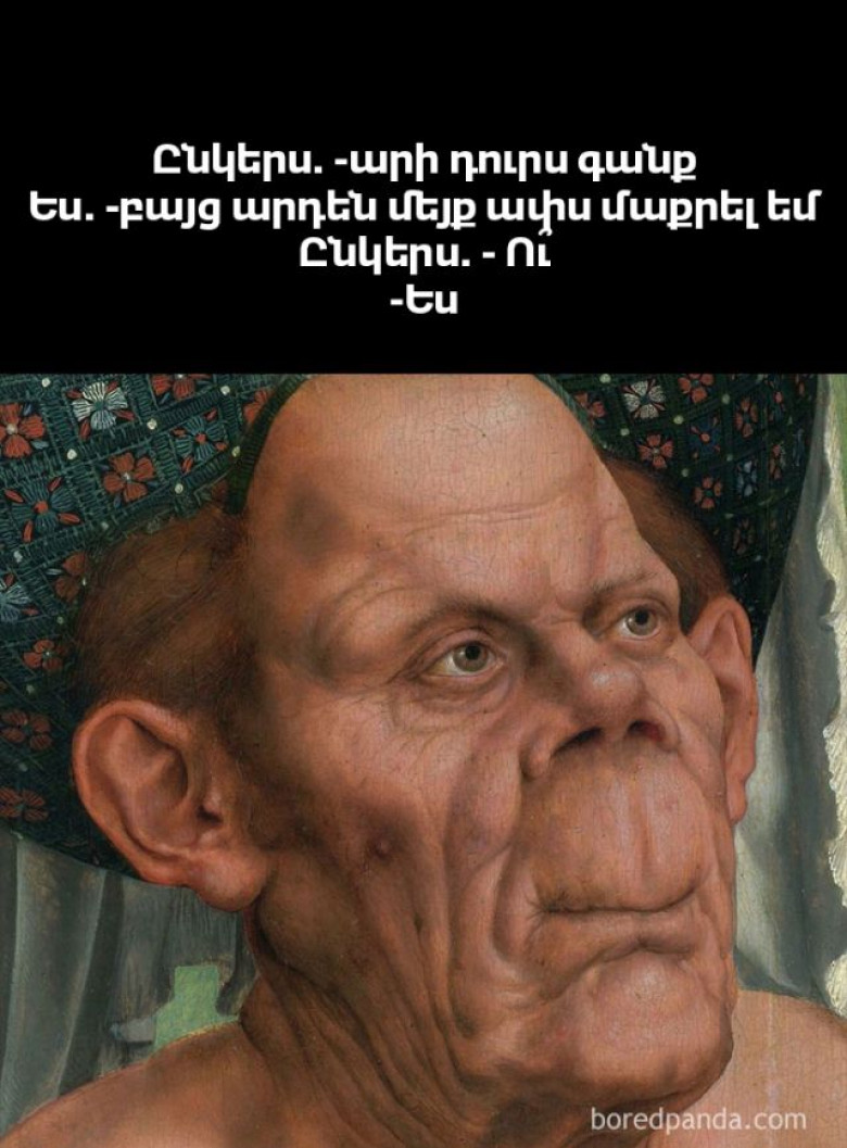 Ի՞նչ կստացվի, եթե արվեստի գործերը մեկնաբանենք այսօրվա լեզվով։ Ինչպես ցույց են տալիս այս նկարները, բավականին զվարճալի ու իրականությանը մոտ է ստացվում։