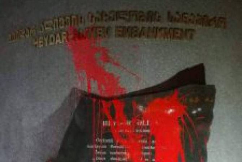 Ներկը լցվել է Հեյդար Ալիևեի հուշարձանի վրա կատարված գրությունը ծածկելու նպատակով: