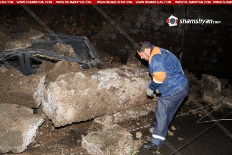 Արտակարգ դեպք Նոր Նորքում. բազալտե 35 մետրանոց հենապատը փլվել է մեքենայի վրա. տերը րոպեներ առաջ էր դուրս եկել (ֆոտո)