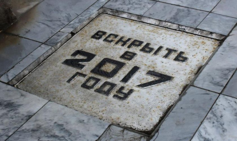 Այս տարի՝ 2017-ին լրանում է Հոկտեմբերյան հեղափխության 100-ամյակը և պատահական չէ, որ մի շարք ժամանակի պարկուճներ հենց այս թվականին են հասցեագրված: Օրինակ այս մեկը, Տոլյատիից: Այն տեղադրել էին կոմսոմոլեցները, 1967 թ-ին: Այդ տարիների կարծում էին, որ իրենց քրտանաջան աշխատանքի շնորհիվ, 50 տարի հետո կոմունիզմը տարածված կլինի ողջ աշխարհովև ամենուր երջանկություն կտիրի...