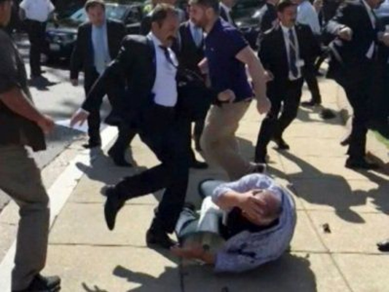 Մայիսի 16-ին ԱՄՆ-ում Թուրքիայի դեսպանի նստավայրի դիմաց, որտեղ այդ պահին գտնվում էր Էրդողանը, տեղի են ունեցել բախումներ՝ Անկարայի գործող իշխանությունների կողմնակիցների ու հակառակորդների միջեւ։ Տուժել էր ինը մարդ, որոնցից երկուսը լուրջ վիրավորումներ էին ստացել։ ԱՄՆ իշխանությունները Էրդողանի 12 թիկնապահներին կալանավորելու օրդեր են տվել։