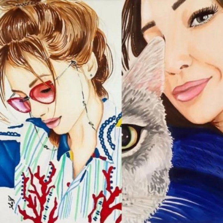 «Ինչպես գիտեք՝ ես նկարում եմ հայտնիներին: Այս անգամ որոշեցի նկարել Սոֆի Մխեյանին եւ Նազենի Հովհաննիսյանին: Նկարներն ընտրում եմ պատահականության սկզբունքով: Նազենին շատ գեղեցիկ լուսանկարներ ունի, բայց ես ընտրեցի կատվի հետ լուսանկարը, քանի որ սիրում եմ տարբերվել իմ աշխատանքներում»,-ասում է իլյուստրատորը՝ հավելելով, որ Նազենին իր նկարը տեսել է Սոֆի Մխեյանի միջոցով: