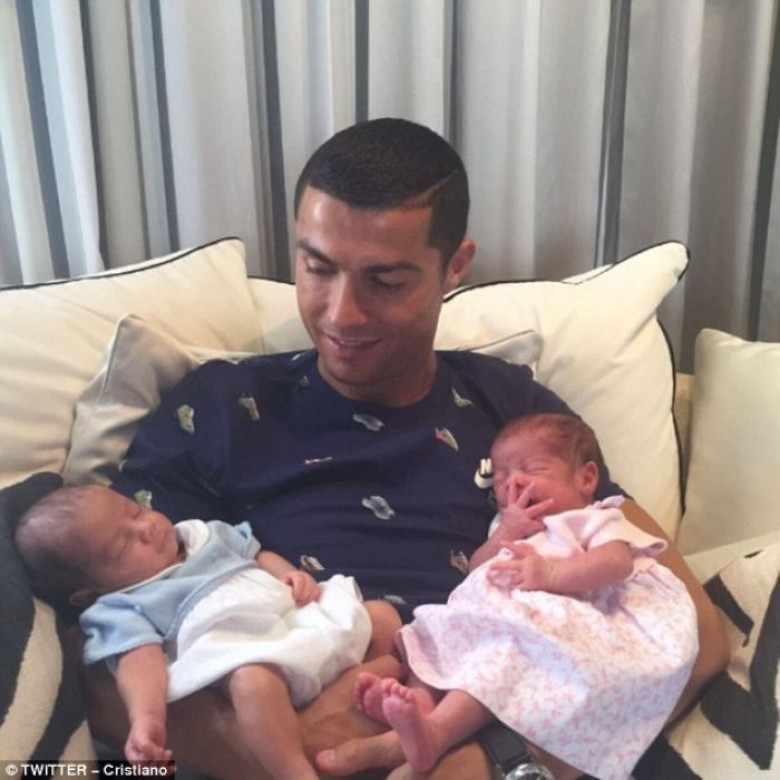 Վերջերս 32-ամյա ֆուտբոլիստը երկվորյակների հայր էր դարձել: ԱՄՆ-ում բնակվող փոխնակ մայրը Պորտուգալիայի հավաքականի ավագից ունեցել էր որդի եւ դուստր: Երկվորյակներին անվանակոչել են Եվա ու Մատեո: Ռոնալդուի 6-ամյա որդին՝ Կրիշտիանու կրտսերը եւս ծնվել է փոխնակ մորից: