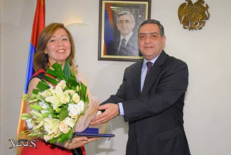 ՀասարակությունՀալեպում ՀՀ գլխավոր հյուպատոսությունում հուլիսի 5-ին` ՀՀ Սահմանադրությանը օրը, տեղի է ունեցել պարգևատրման արարողություն: Ինչպես տեղեկացրին Հալեպում ՀՀ գլխավոր հյուպատոսությունից, Հայաստանի Հանրապետության Անկախության 25-ամյակի առթիվ, Հայրենիք-սփյուռք կապերի ամրապնդման և զարգացման գործում ներդրած ավանդի համար «Գանձասար» շաբաթաթերթի գլխավոր խմբագիր Զարմինե Չիլաբոշյան-Պողիկյանը պարգևատրվել է Մովսես Խորենացու մեդալով: ՀՀ Նախագահ Սերժ #Սարգսյանի անունից պարգևը հանձնել է Հալեպում ՀՀ գլխավոր հյուպատոս Տիգրան Գևորգյանը: