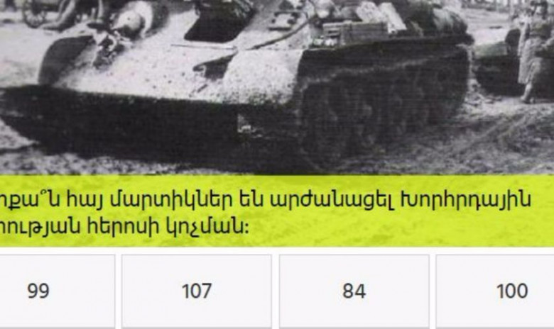 Հայերն ակտիվ մասնակցել են Երկրորդ աշխարհամարտին։ Ավելի քան մեկուկես միլիոն հայ մարտնչել է Հայրենական պատերազմի ժամանակ։ Գրեթե յուրաքանչյուր երկրորդը չի վերադարձել ռազմաճակատից։ Տասնյակ հազարավոր հայ մարտիկներ արժանացել են շքանշանների և մեդալների։ «Նովոստի–Արմենիա» գործակալությունն առաջարկում է իր ընթերցողներին անցնել թեստը և ստուգել սեփական գիտելիքները։