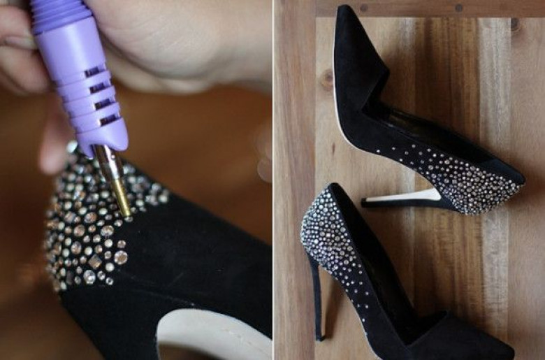 1.      Կոշիկներին թանկարժեք քարերով զարդարված տեսք  հաղորդելու համար ընտրեք զարդարանքներն, առանձնացրեք դրանք պաշտպանիչ մետաղից ու փակցրեք կոշիկներին։