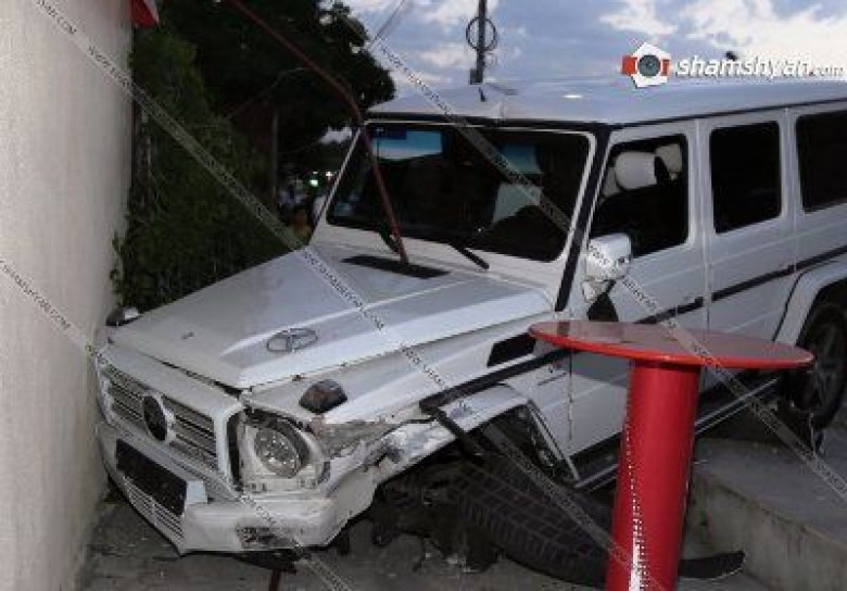 Բախման հետեւանքով Mercedes-ը դուրս է եկել ճանապարհի երթեւեկելի գոտուց եւ հայտնվել սրճարանի մայթին: