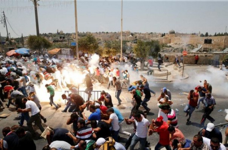 Արաբները զանգվածային աղոթքներ են կազմակերպել Երուսաղեմի փողոցներում՝ հրաժարվելով Տաճարի լեռան մզկիթների մոտ բարձրանալ անվտանգության նկատառումներով տեղադրված մետաղական դետեկտորների միջով և Որոշ հատվածներում բախումներ են սկսվել Իսրայելի ոստիկանության հետ: