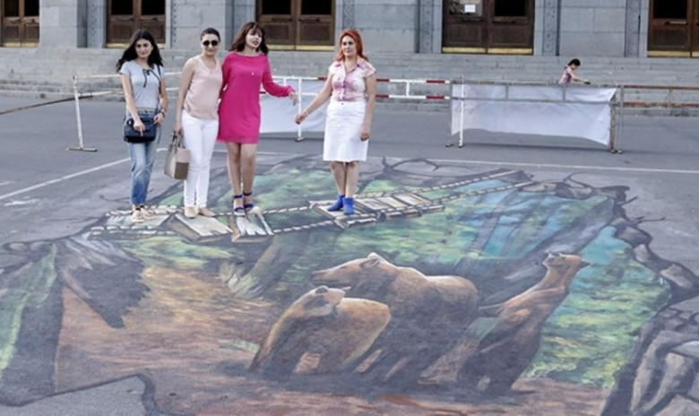 Երևանի քաղաքապետարանի նախաձեռնությամբ հերթական անակնկալն է մատուցվել մայրաքաղաքի բնակիչներին և հյուրերին: Ազատության հրապարակում ստեղծվել է հերթական եռաչափ նկարը (3D սթրիթ արթ)՝ այս անգամ ձորում զբոսնող արջերի պատկերով: Նկարը ստեղծվել է հատուկ ջրակայուն և ջերմակայուն ներկերով:
