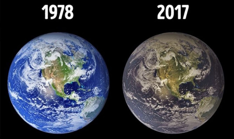 Սա այդքան էլ մեծ նորություն չէ մարդկանց համար։ Սակայն տիեզերագնացները պնդում են, որ ընդամենը մի քանի տասնամյակ առաջ Երկրի տեսքը շատ տարբերվում էր նրանից, ինչ որ տեսնում են հիմա։ Աղտոտման պատճառով մեր կանաչ, կապույտ ու սպիտակ մոլորակը վերածվում է շագանակագույն, մոխրագույն և սև մոլորակի։