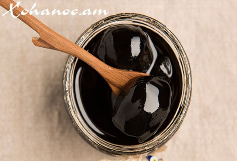 Կանաչ խակ ընկույզը կլպել, վրան սառը ջուր լցնել և այդպես թողնել 6 օր, ամեն օր 3 — 4 անգամ ջուրը փոխել, մինչև որ ընկույզները մուգ գույն ստանան։ Դրանից հետո ջուրը թափել, իսկ ընկույզները գցել կրաջրի մեջ և պարրերարար խառնելով այդպես թողնել երեք օր։ Կրաջուրր պատրաստում են 0,5 կգ չմարած կրից, որի վրա լցնում են 5 լ սաոը ջուր, խաոնում և հետո.քամում են մառլայով։