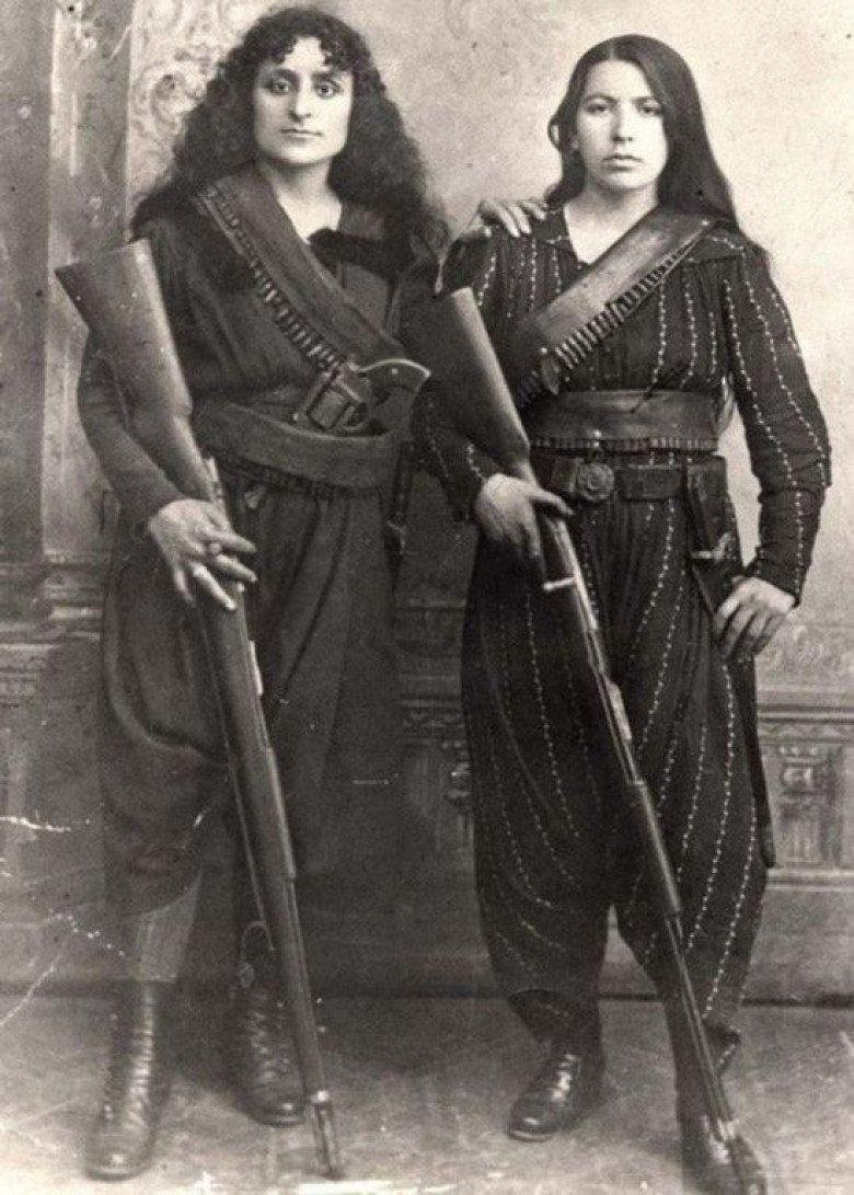 Armenian women fedayi in Zeytun... To the right, Eghisapet Sultanian, great grandmother of American rock musician keyboardist Derek Sherinian during the 1895 Hamidian massacres.