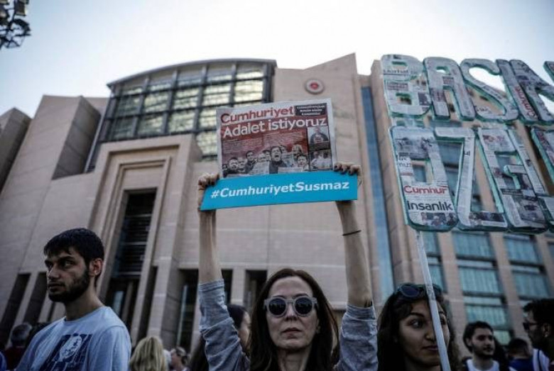 Երկրի առաջատար լրատվամիջոցներից մեկի աշխատակիցների դեմ դատական գործընթացը մեկնարկել է հուլիսի 24-ից: Որպես կասկածյալ են ներգրավված «Ջումհուրիեթ»-ի 17 աշխատակից, այդ թվում և գլխավոր խմբագիր Մուրադ Սաբունջուն, գործադիր տնօրեն Աքըն Աթալայը: Նրանցից 11-ը գտնվում էին կալանքի տակ, մյուս վեցը՝ երկրից դուրս չգալու պայմանով ազատության մեջ են: Բացի այդ, հետախուզման մեջ են հայտարարված պարբերականի երկու աշխատակից, այդ թվում և նախկին գլխավոր խմբագիր, թուրք առաջատար լրագրող Ջան Դյունդարը:
