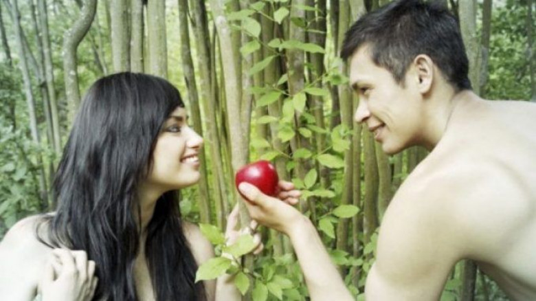 Ադամն ու Եվան իրենց կարիքներն են հոգում այգում, երբ նրանց մոտ է գալիս Աստված ու ասում.