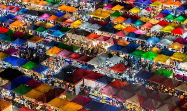 Երբ գիշերն իջնում է Բանգկոկի վրա, գունավոր շուկայի տաղավարները վերակենդանանում են: