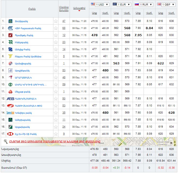 Արտարժույթների փոխարժեքները օգոստոսի 8-ի դրությամբ
