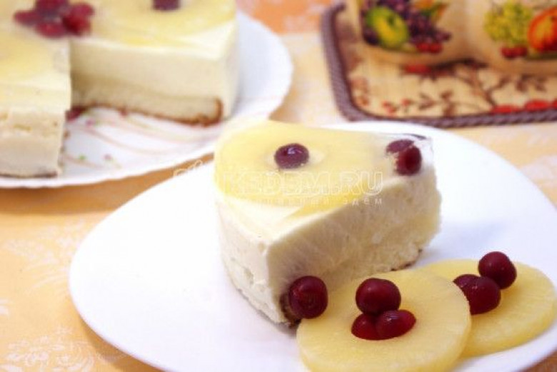 Դոնդողը ½ բաժակ գոլ ջրով թռչել, և թողնել 20-30 րոպե։ Սերուցքը շաքարավազով հարել և վրան լցնել դոնդող, ապա կիտրոնի կեղևները։ Խմորը մեջտեղից բաժանել երկու մասին, վրան լցնել անանասի հյութ, ապա կրեմը, ապա խմորի վրա դնել երկրորդ կեսը և վրան կրեմներ քսել։ Դնել սառնարան 2-3 ժամ։ Այն զարդարել անանասներով և բալով։