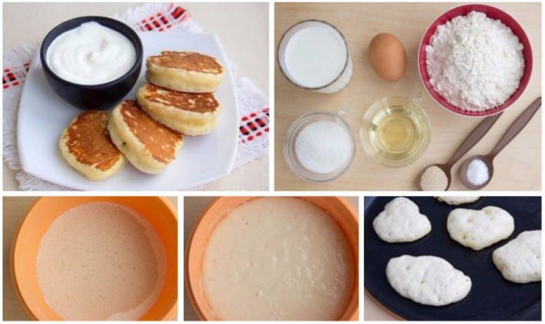Կեֆիրը տաքացնել վրան ավելացնել շաքարավազը, ձուն, սոդան, աղը, ալյուրը հերթականությամբ և լավ խառնել: