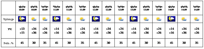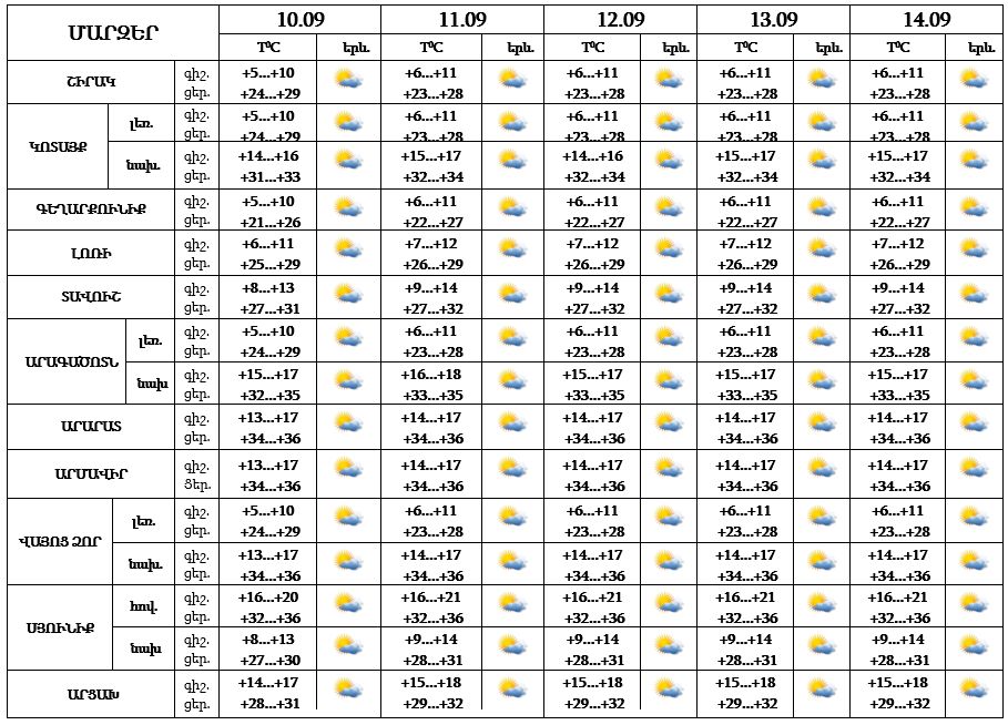 Սեպտեմբերի 10-14-ը հանրապետության տարածքում սպասվում է առանց տեղումների եղանակ: