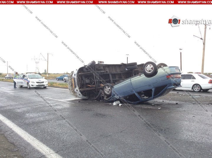 Խոշոր ավտովթար Երևան-Արմավիր ճանապարհին. բախվել են ЛАДА-ն ու մարդատար Газель-ը, ЛАДА-ն գլխիվայր շրջվել է, Газель-ը կողաշրջվել է