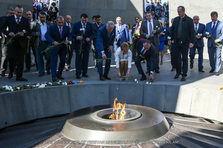 Երևանի օրվա առթիվ մայրաքաղաք այցելած պատվիրակությունները հարգանքի տուրք են մատուցել Հայոց ցեղասպանության զոհերի հիշատակին