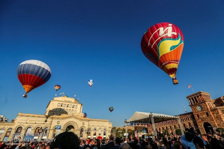 օդապարիկներով հետզհետե բարձրացել են տոնախմբող Երևանի երկինք: