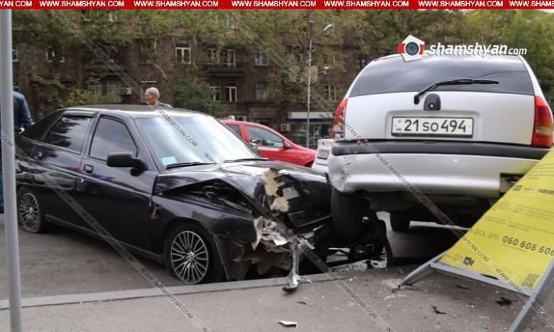 Երևանում բախվել են KIA-ն, ВАЗ 21012-ն ու Opel-ը, վերջինն էլ վնասել է վճարովի ավտոկայանատեղիի գովազդային ցուցանակը