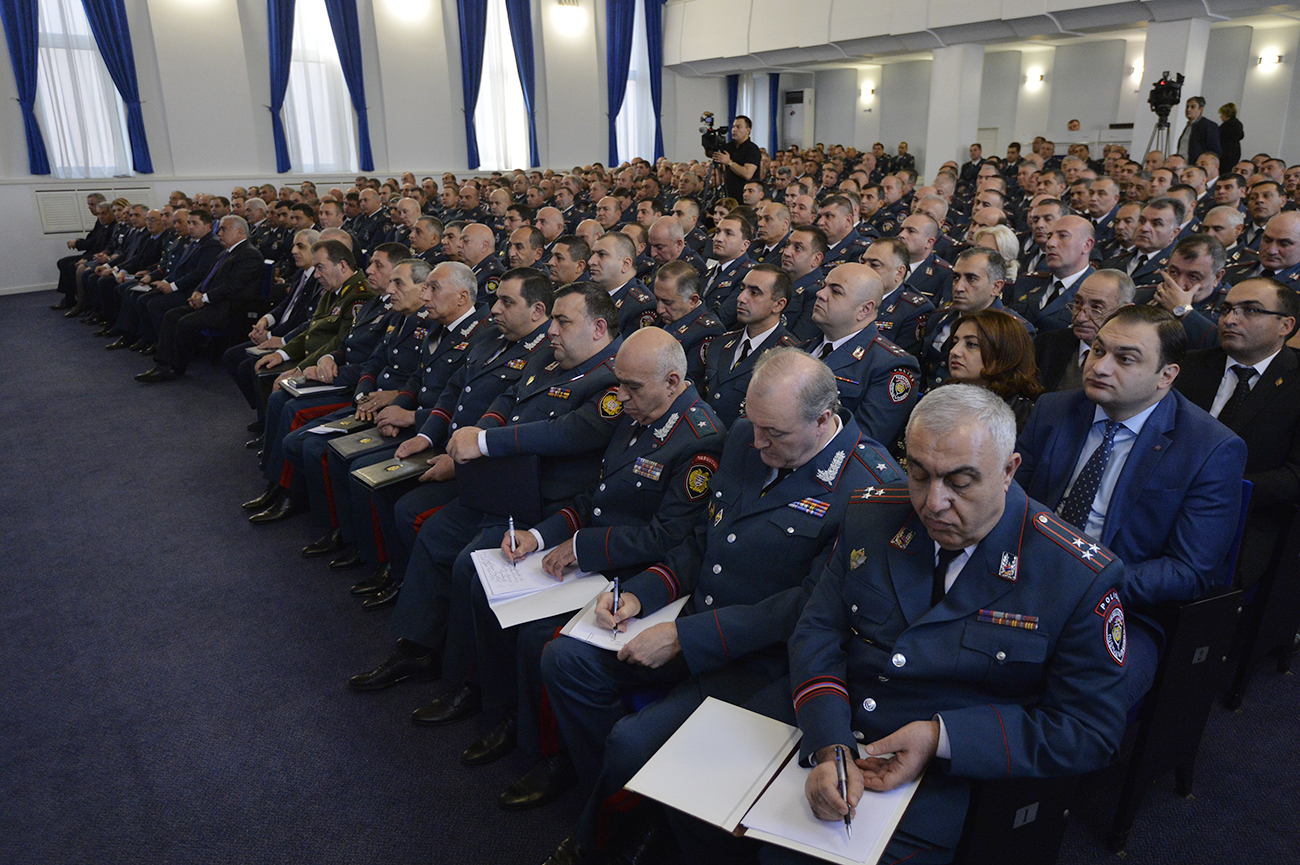 Երկրի անվտանգության առումով դրական և էական առաջընթաց արձանագրելով հանդերձ՝ կարծում եմ, որ այսօր դեռ վաղ է վերջնականապես գնահատել, թե արդյո՞ք իմ սպասելիքներն ամբողջությամբ արդարացվել են: Միաժամանակ գտնում եմ, որ ձեզ հետ հանդիպումը շատ լավ առիթ է լրացուցիչ անգամ վեր հանելու ոստիկանության առջև ծառացած խնդիրները և նախանշելու հետագա անելիքները: