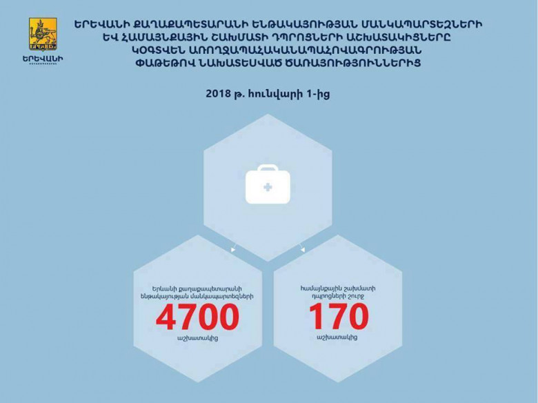Երևանի քաղաքապետարանի ենթակայության մանկապարտեզների 4700 աշխատակիցները կօգտվեն առողջապահական ապահովագրության փաթեթով նախատեսված ծառայություններից