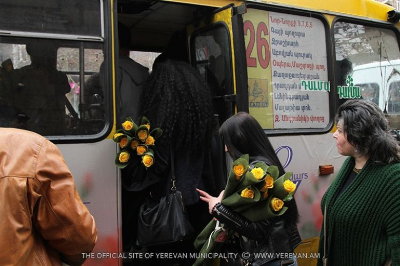 ՀասարակությունՄարտի 8-յան տոնական Երևանում կանանց և աղջիկներին անակնկալ է մատուցվել նաև վերգետնյա հասարակական տրանսպորտում: