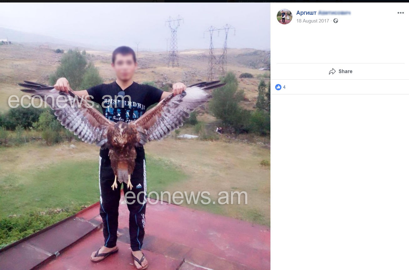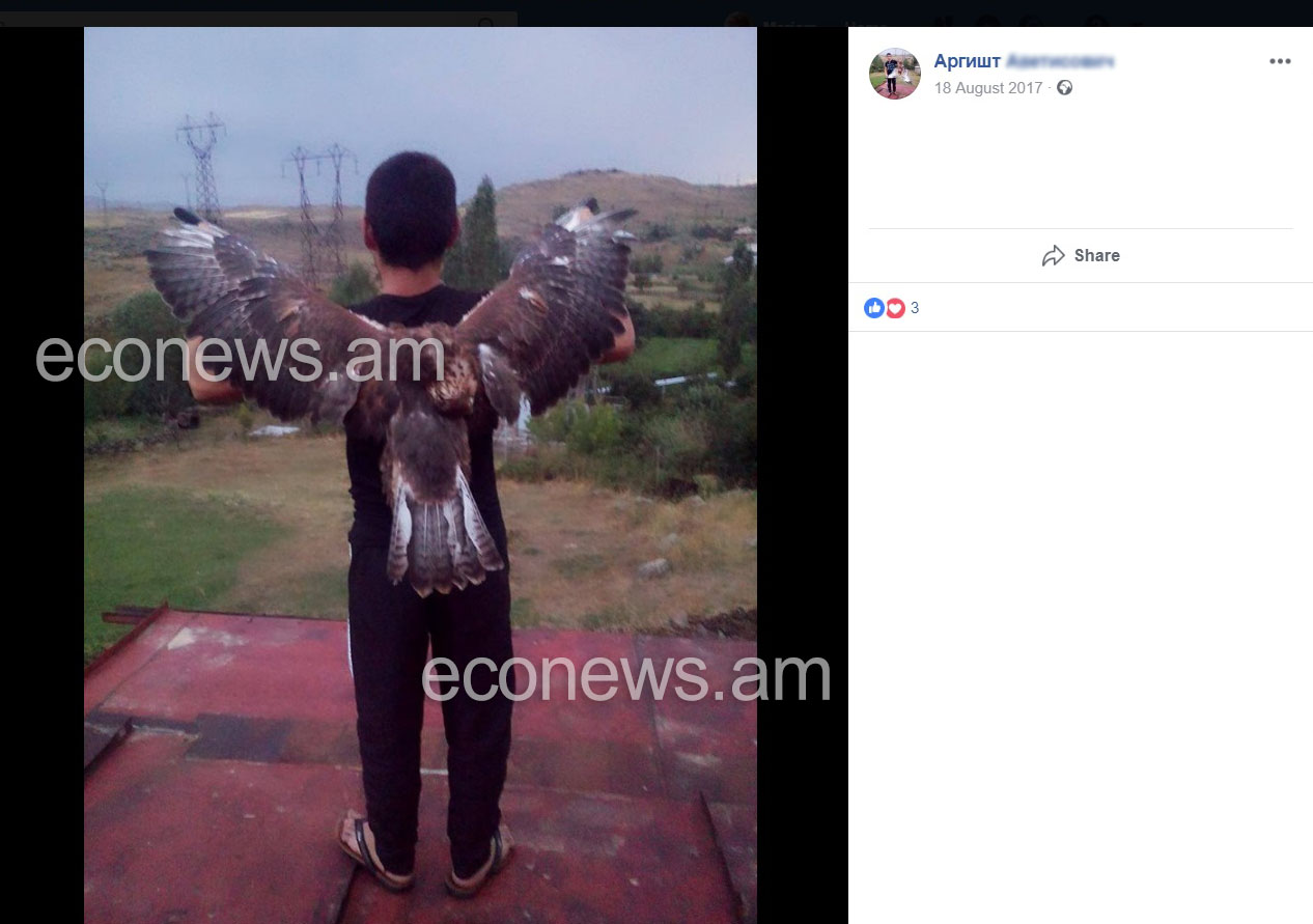 ՀասարակությունEcoNews.am կայքը տեղեկատվություն էր հրապարակել, որ մի Ֆեյսբուք սոցիալական ցանցի օգտատերը լուսանկարվել է որսի համար չթույլատրվող գիշատիչ թռչուն համարվող մեծ ճուռակի հետ և այդ լուսանկարները 2017 թվականին բեռնել է համացանց։
