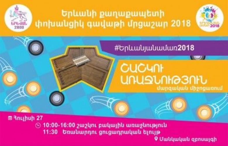 ՀասարակությունՀուլիսի 27-ին ՝ ժամը 10:00-16:00-ն, «Երևանյան ամառ 2018» եռամսյա միջոցառումների ծրագրով անցկացվող Երևանի քաղաքապետի փոխանցիկ գավաթի 2018 թվականի մրցաշարի շրջանակում Մանկական զբոսայգում կկայանա շաշկու բակային առաջնությունը: