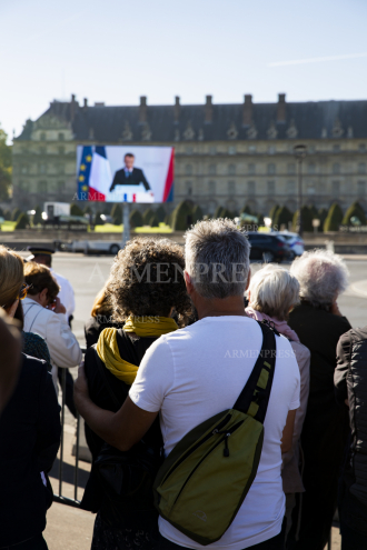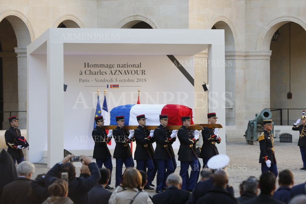 Ֆրանսիայի Ազգային Գվարդիայի նվագախմբի կատարմամբ նախ հնչել են Հայաստանի և Ֆրանսիայի ազգային օրհներգերը, որից հետո վարչապետ Փաշինյանը և Էմանուլ Մակրոնը մոտեցել են Շառլ Ազնավուրի ընտանիքի անդամներին ու իրենց ցավակցությունները հայտնել նրանց: